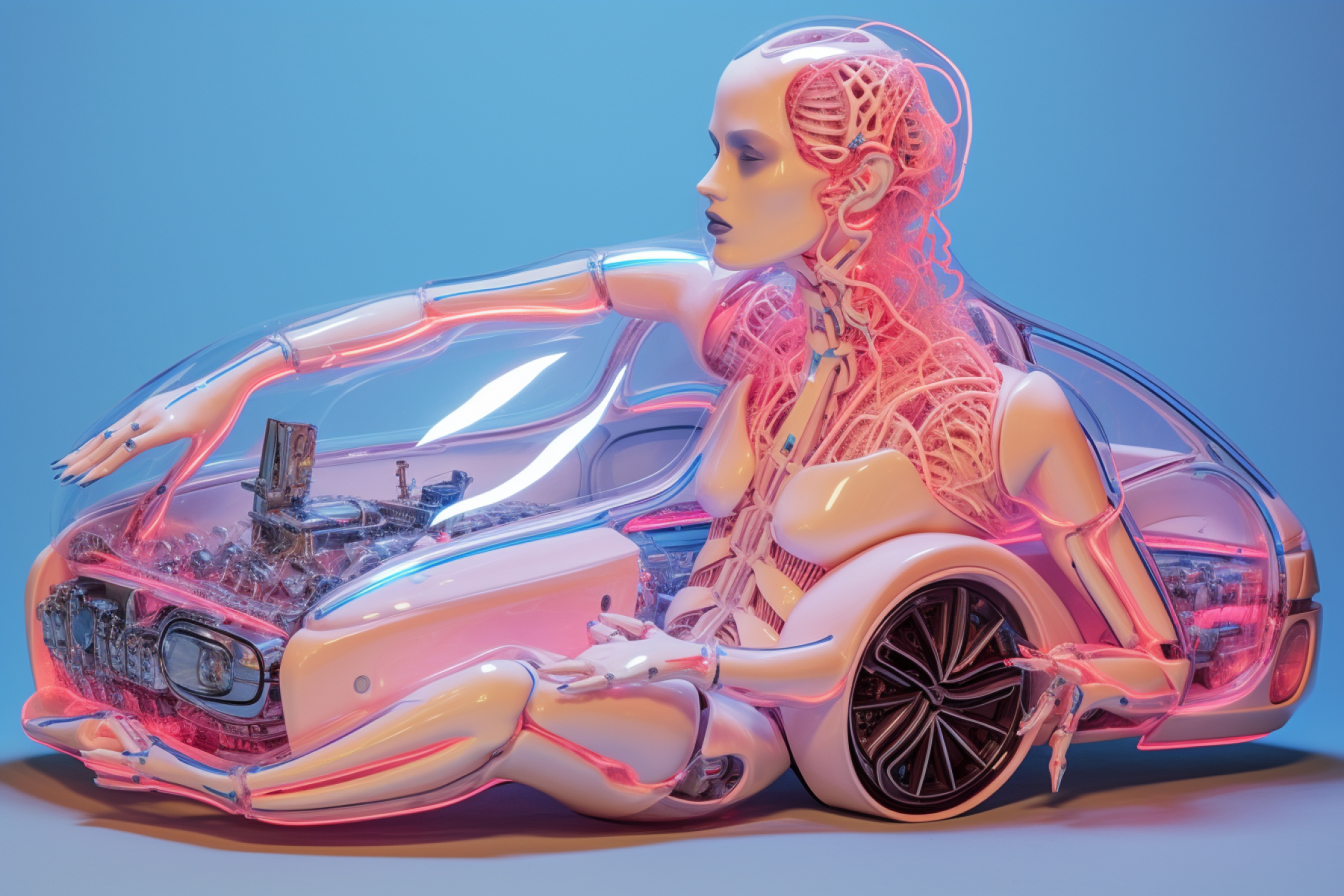 <ROLA ON DA ROAD> is a short roa movie that follows the journey of ‘R’, an executive at the Saudi Arabian oil company Aramco, as he joins the radical ecological network 'ROLA', which stands in stark ideological contrast to his own beliefs. 'ROLA' represents a new humanity that creates movement by merging solar energy, bacteria, cars, and their own bodies, seeking to break free from the dead-end of the current mobility system. The first part, reminiscent of a Sci-Fi graphic novel, depicts R’s chaotic evolution process at high speed. The second part, utilizing point cloud 3D animation techniques, reenacts his rite of passage into becoming a true planetary being.